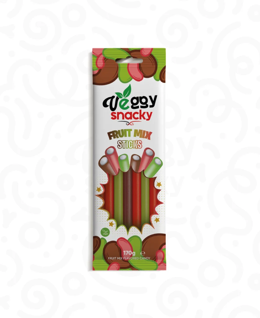 Veggy Snacky the vegan candy brand from Germany.  The name combines "Veggy" for vegan and "Snacky'' for snacks - representing pure enjoyment without